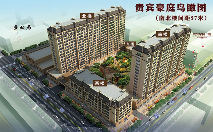 位于貴賓南花園南側,一期工程2023年開工建設,計劃2025年竣工并交付使用。項目建設用地64380平方米,規(guī)劃建設12棟住宅樓及4棟生活配套樓,總建筑面積約20萬平方米。